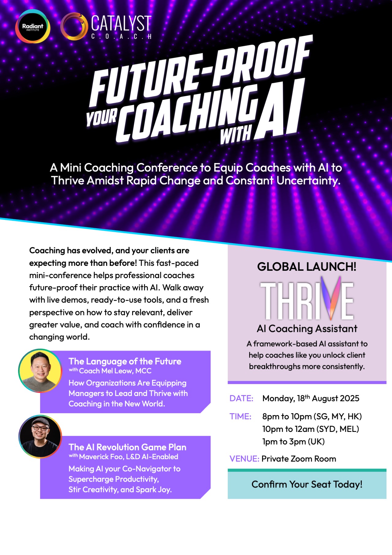 Fill In Your Details So We Can Secure Your Spot! For everyone’s improved security, you’ll be required to register again when you enter the Zoom Room. Reg Form - Future-Proof Your Coaching with AIFirst NameMobile NumberEmailCompany Name SIGN ME UP